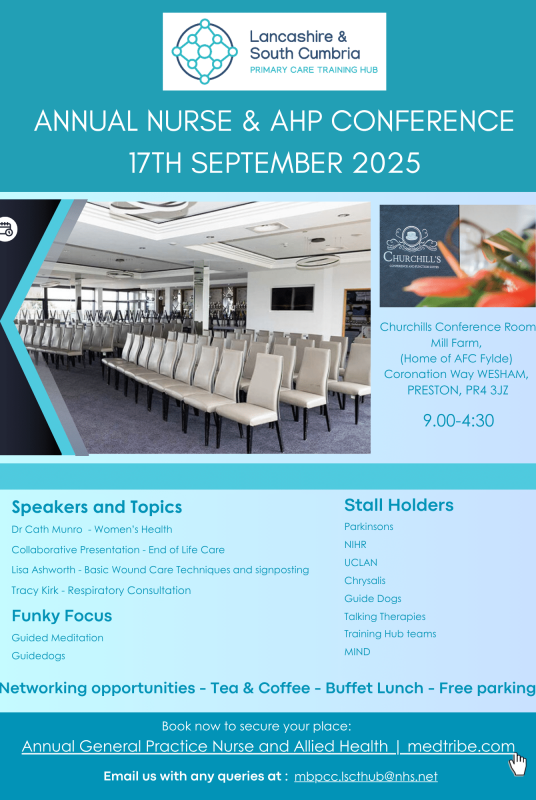 Fylde Coast Primary Care Training Hub is proud to present the following fully funded training opportunities open to General Practice Nurses and AHPs for financial year 2025/26.