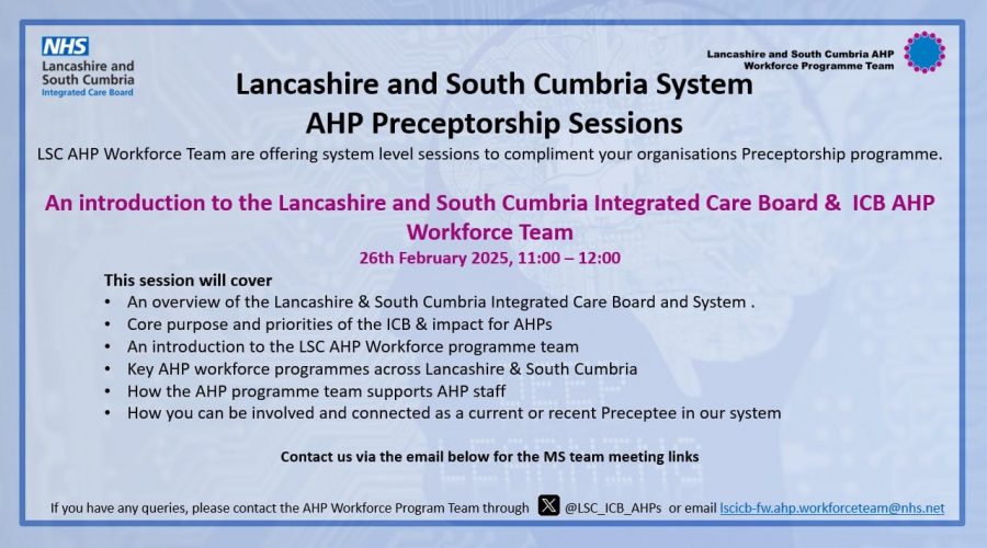 - An introduction to the Lancashire and South Cumbria Integrated Care Board & ICB AHP Workforce Team