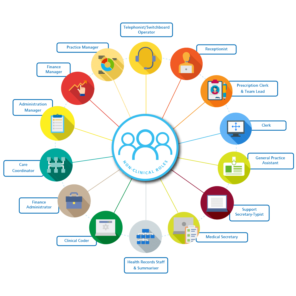 Click on the icons to find out more about the Non-Clinical roles in Primary Care.